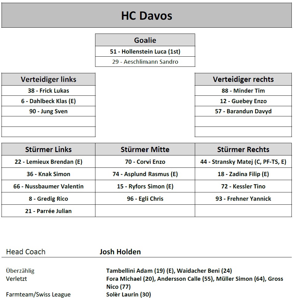 Aufstellung HC Davos