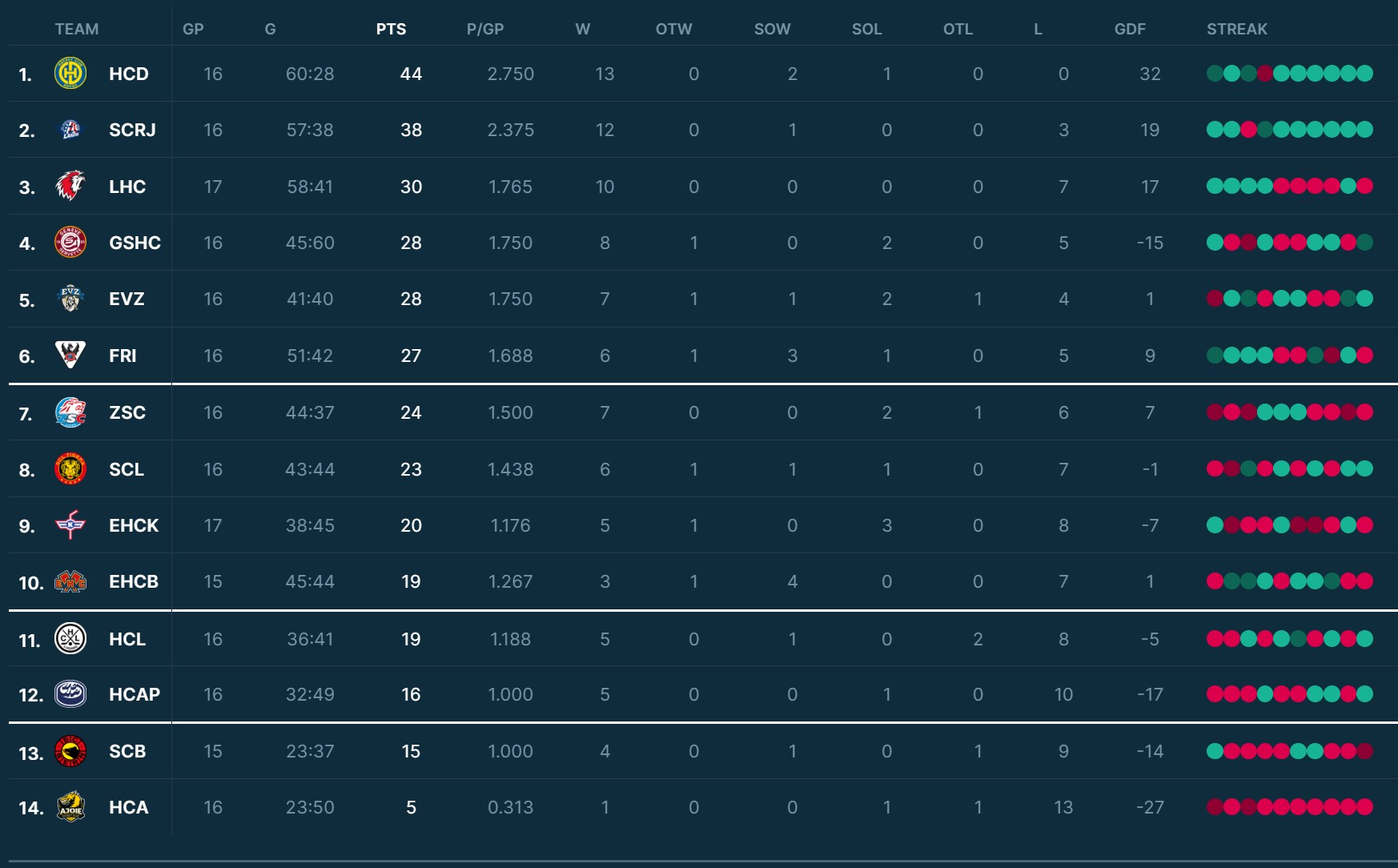 Der HC Davos präsentiert sich derzeit als das Mass aller Dinge in der National League. Die Bündner haben ihre letzten sechs Spiele allesamt gewonnen und befinden sich in einer beeindruckenden Formkurve. Am vergangenen Wochenende unterstrich das Team von Trainer Josh Holden einmal mehr seine Titelambitionen: Mit einem 0:3-Auswärtssieg in Lugano sowie einem souveränen 3:1-Heimerfolg gegen den amtierenden Meister ZSC Lions setzte der HCD zwei weitere Ausrufezeichen. Die bisher einzige Niederlage der laufenden Saison datiert vom 30. September, als sich Davos auswärts den Rapperswil-Jona Lakers knapp mit 4:3 nach Penaltyschiessen geschlagen geben musste. Seitdem ist der Rekordmeister ungeschlagen und hat sich mit konstant starken Auftritten an die Tabellenspitze gesetzt. Besonders auffällig: Davos überzeugt nicht nur offensiv mit Spielfreude und Effizienz, sondern auch defensiv mit einer stabilen und disziplinierten Leistung. Die aktuelle Serie spricht eine deutliche Sprache – der HCD ist derzeit das Team, das es zu schlagen gilt.