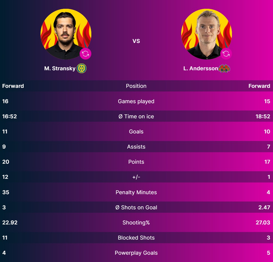 Beim HC Davos trägt Matej Stransky den gelben Helm. Der Tscheche hat bisher elf Tore erzielt und neun Assists geliefert. Beim EHC Biel ist Lias Andersson der beste Punktesammler. Der Schwede hat zehn Tore und sieben Assists auf dem Konto.