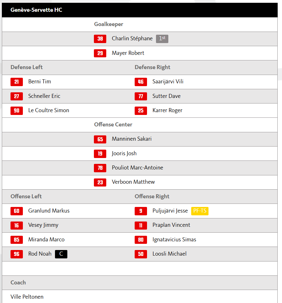 Der Oktober startete für die Genfer desolat! Mit zwei Kanterniederlagen gegen Lugano (1:5) und Biel (0:8). Diese beiden Niederlagen waren für Trainer Yorick Treille zu viel und er musste seinen Hut nehmen. Für ihn übernahm Ville Peltonen interimistisch und führte die Mannschaft in Zug zu einem 4:1 Sieg und auch gegen Lausanne gelang mit 5:3 der Derbysieg. Am letzten Freitag setzte es dann die erste Niederlage unter dem neuen Coach mit einem 2:6 Gegen die Drachen aus Fribourg. Die Partie am vergangenen Wochenende konnten die Calvinstädter gegen den SC Bern mit 2:1 für sich entscheiden.