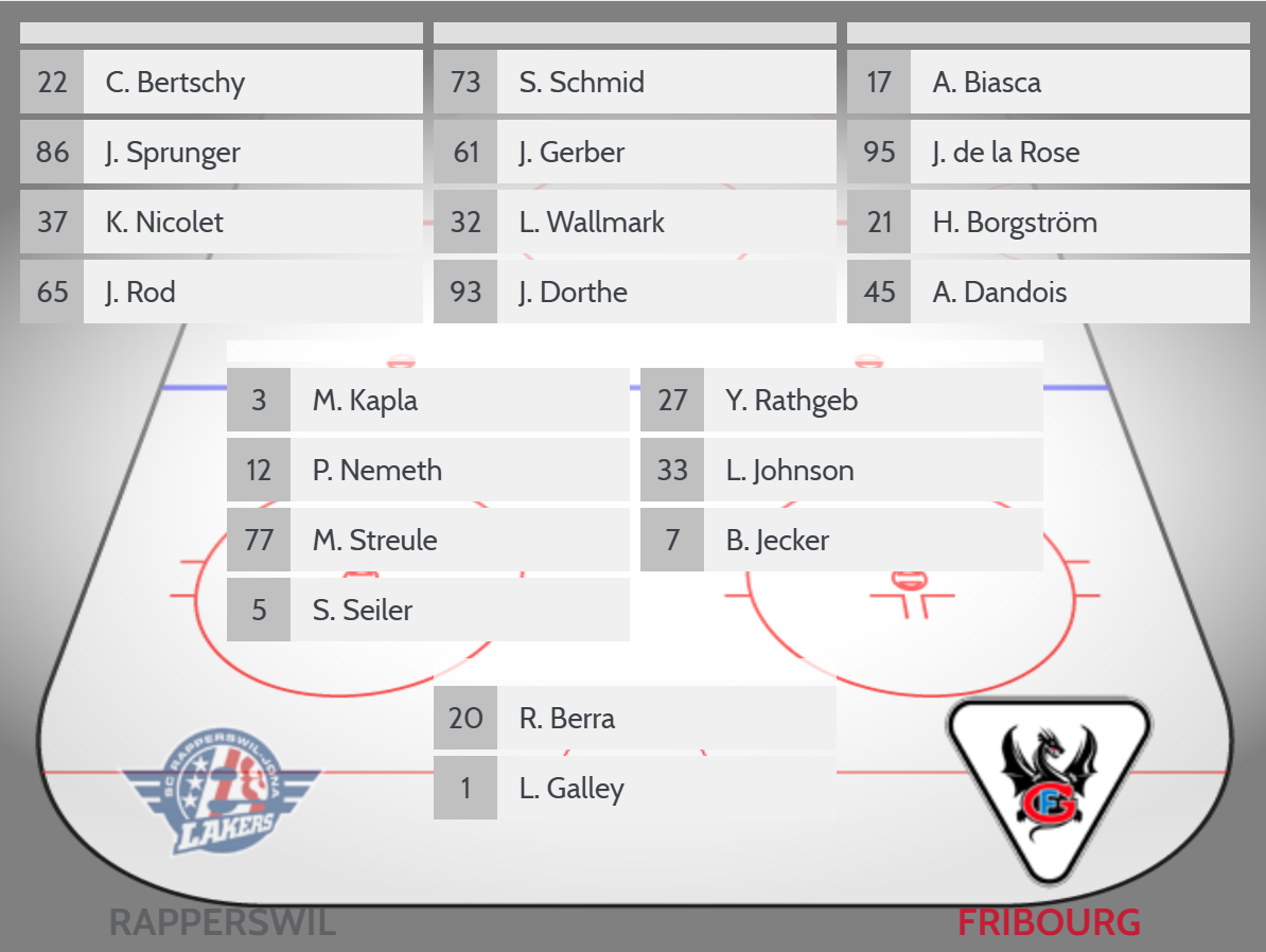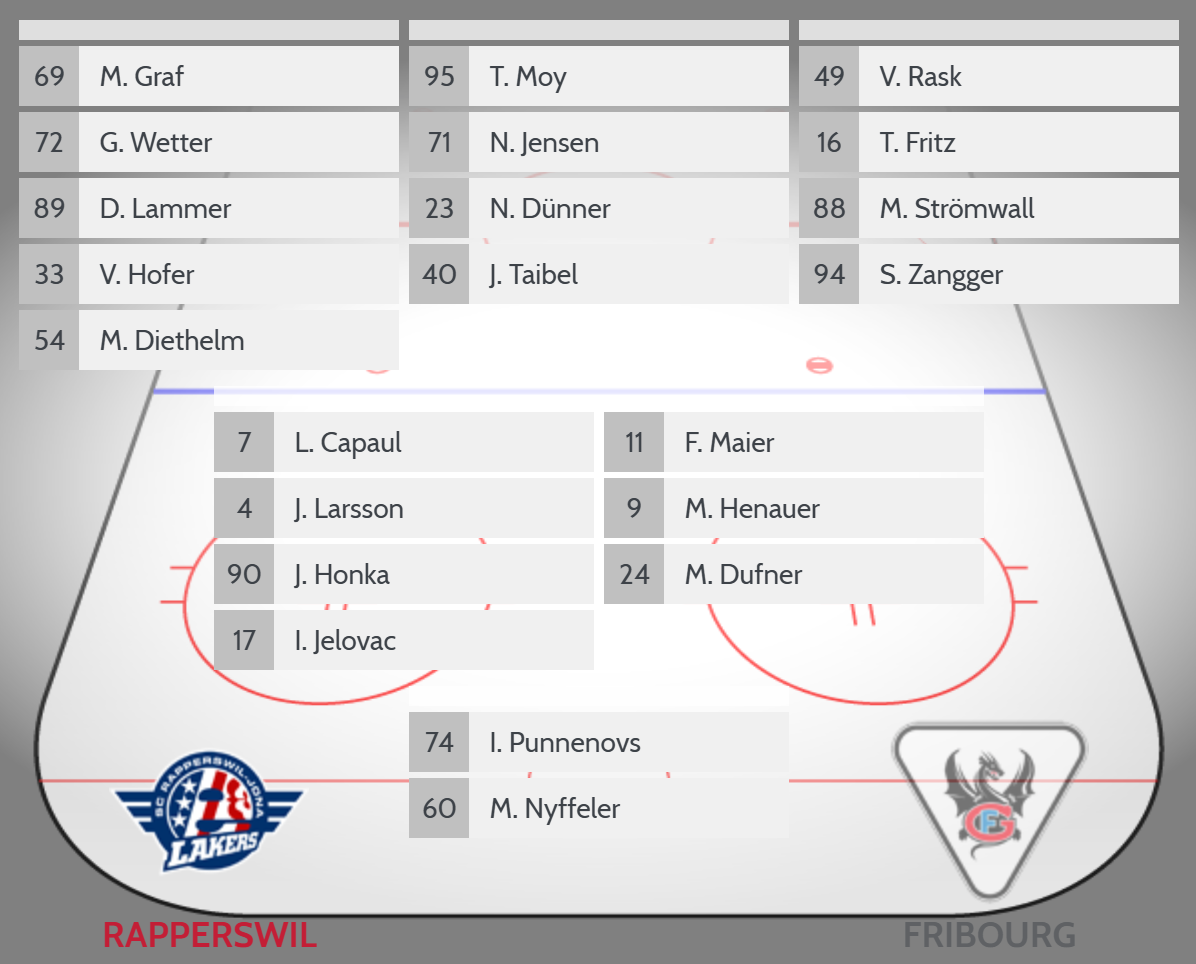 Bei den Lakers trägt heute Tyler Moy das Trikot des Topscorers. In 20 Spielen sammelte der Schweizer Stürmer 16 Skorerpunkte: Zehnmal bereitete er einen Treffer vor, sechsmal traf er selbst. Auf Seiten von Fribourg läuft Sandro Schmid mit dem Feuerhelm auf. Er scorte in 20 Partien 13 Assists und erzielte fünf eigene Tore.