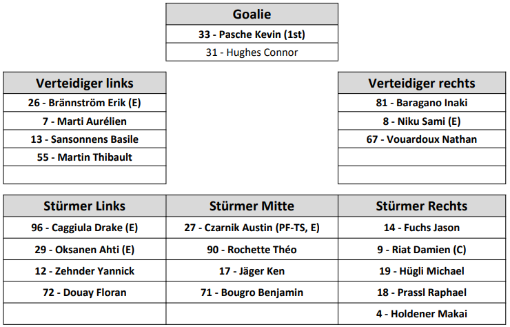Das Team von Johan Lundskog wird weiterhin regelmässig von der Verletzungshexe besucht. Im letzten Spiel traf es Capaul, welcher nun wie Pilut, Albrecht, Taibel, Hornecker, Jensen und Honka als verletzt gelistet wird. Rappi reagiert auf die Vielzahl an Ausfällen und gab diese Woche die Verpflichtung von Philippe Maillet bekannt. Der 33jährige, kanadische Stürmer stösst bis Ende Saison zu den Rosenstädtern und ist in der National League nicht unbekannt. In der Saison 2024/25 heuerte er bereits bei Ambri an. Bis zu seiner Anstellung am Zürichsee hat er sich in seiner Heimat Montréal fit gehalten. Für einen Einsatz gegen Lausanne hat es aber noch nicht gereicht. Mit Ausnahme der Absenz von Capaul treten die Lakers im Vergleich zur letzten Partie aber unverändert an.