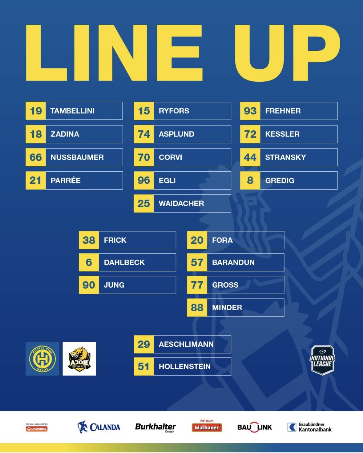 Beim HCD fehlen Brendan Lemieux, Simon Knak und Calle Andersson verletzt. Im Vergleich zum Sieg gegen den SCB spielt Tim Minder anstelle des überzähligen Enzo Guebey, ansonsten gibt es keine Änderungen. Im Tor steht erneut Sandro Aeschlimann, der mit einer Fangquote von 92.58% bislang ebenfalls stark unterwegs ist.