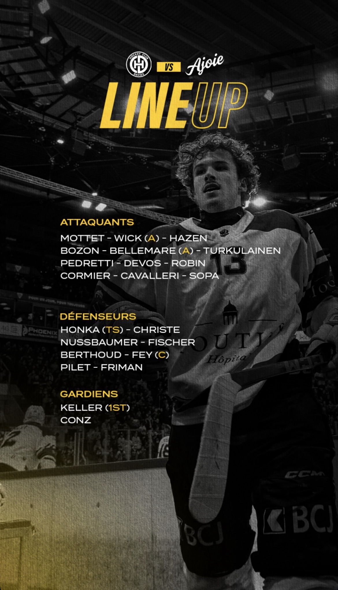 Bei den Jurassiern fehlen Thiry, Frederic Gauthier, Reto Schmutz, Noah Patenaude, Lilian Garessus und Julius Naettinen verletzt. Im Vergleich zum Sieg gegen die Lions ersetzt Jeremy Wick den neu ausgefallenen Gauthier als Center der ersten Linie. Zudem rückt Verteidiger Niklas Friman neu ins Team. Im Tor steht erneut Antoine Keller, der gegen den ZSC eine starke Leistung zeigte und in seinen bisherigen Einsätzen eine überragende Fangquote von 95.42% aufweist.