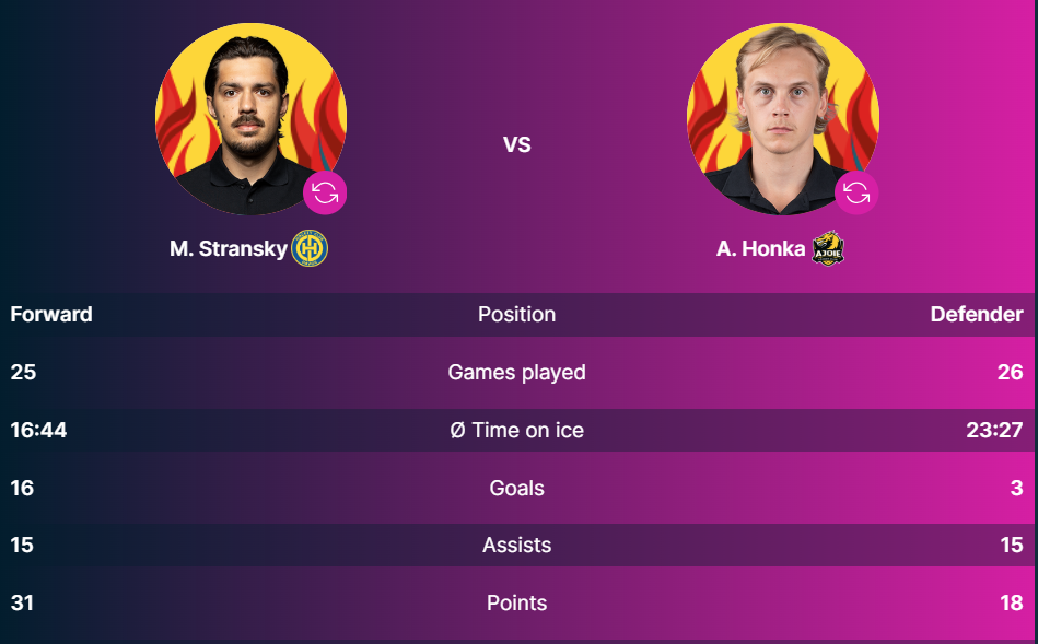 Beim HCD trägt Matej Stransky den gelben Helm. Mit 16 Toren und 15 Assists, total also 31 Punkten, ist er aktuell Ligatopscorer. Auf Seiten von Ajoie ist Anttoni Honka der Topscorer. Er hat bisher 18 Punkte gesammelt, dies mit 15 Assists und 3 Toren.