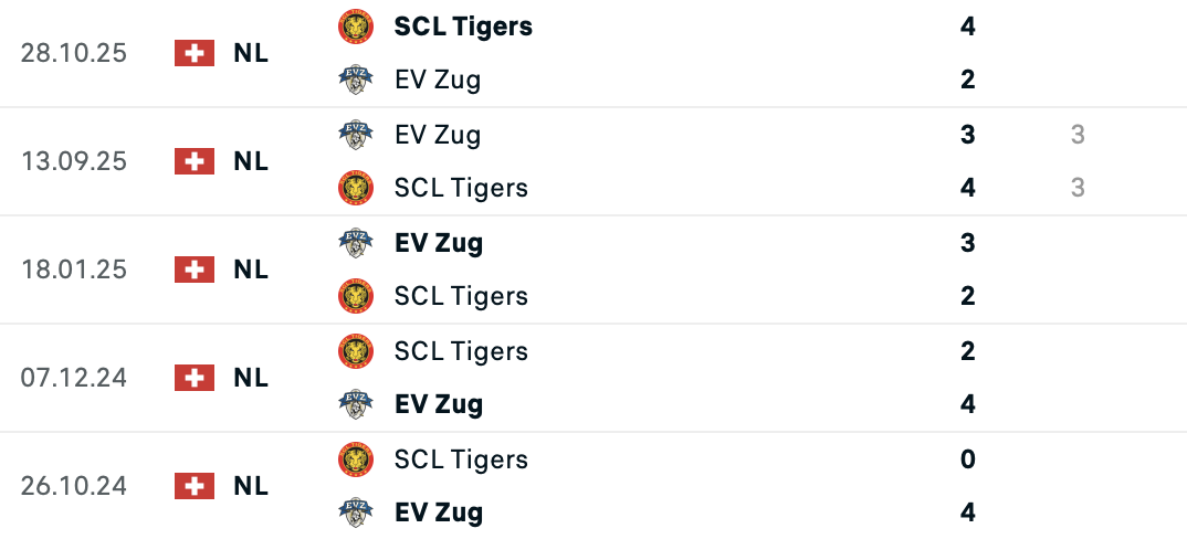 Beide Saisonduelle konnten die SCL Tigers zu ihren Gunsten entscheiden. Mitte September gelang ihnen einen 3:4-Sieg nach Verlängerung. Vor gut einem Montag besiegten die Langnauer die Zuger zuhause mit 4:2. Zuvor konnten die Kolinstädter alle drei Direktduelle gewinnen. Geht die Langnauer Erfolgsserie weiter?