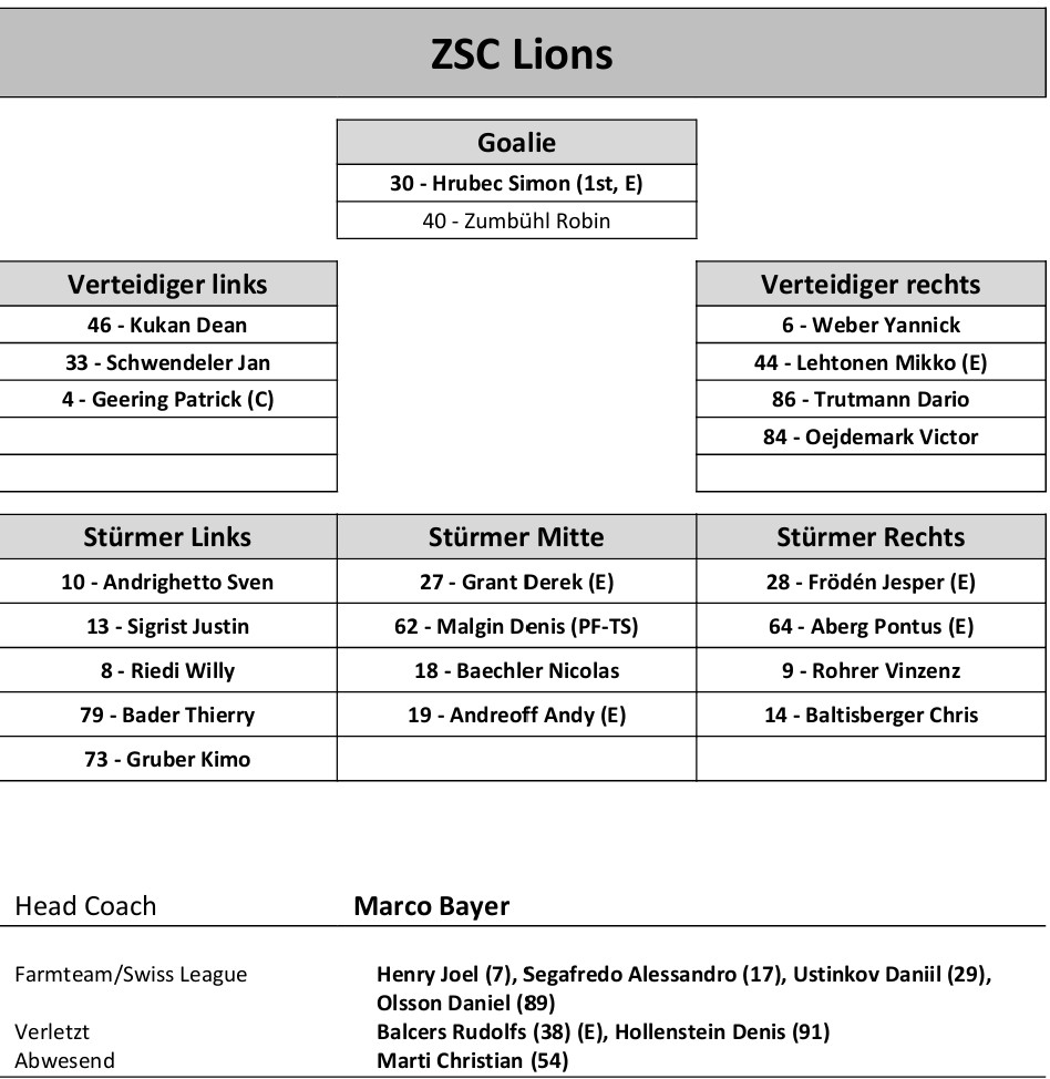 Marco Bayer nimmt im Vergleich zum letzten Spiel gegen den HCD zwei Änderungen im Lineup vor. Victor Oejdemark spielt anstelle von Christian Marti und Denis Malgin ersetzt Alessandro Segafredo.