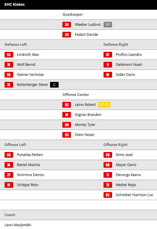 Aufstellung EHC Kloten