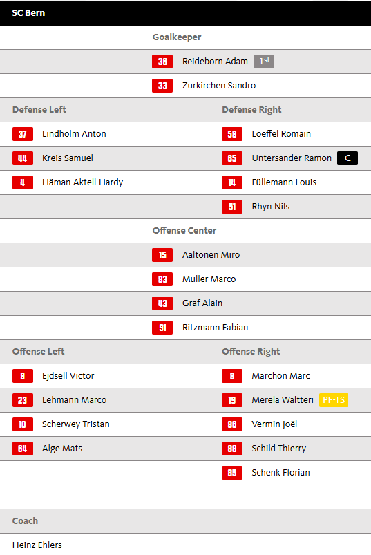 Aufstellung SC Bern