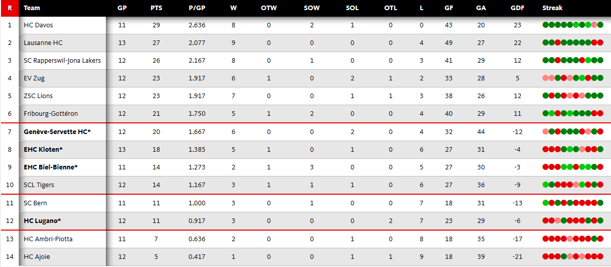 Genf, Kloten, Biel und Lugano bestreiten ihre Sonntagspartien bereits -  die Spiele sind ebenfalls live bei uns per Liveticker mitzuverfolgen. Ambri und Davos komplettieren damit die National-League-Woche mit einem Duell zwischen Top und Flop. Die Davoser fegen seit dem Saisonstart ihre Gegner regelmässig aus den Eishallten und auf der anderen Seite kommt Ambri mit sieben Punkten nicht vom Fleck und sitzt bereits tief im Tabellenkeller. Davos kann mit einem Sieg die Tabellenspitze festigen und Ambri kann mit einem Vollerfolg an den Kantonsrivalen heranrücken.