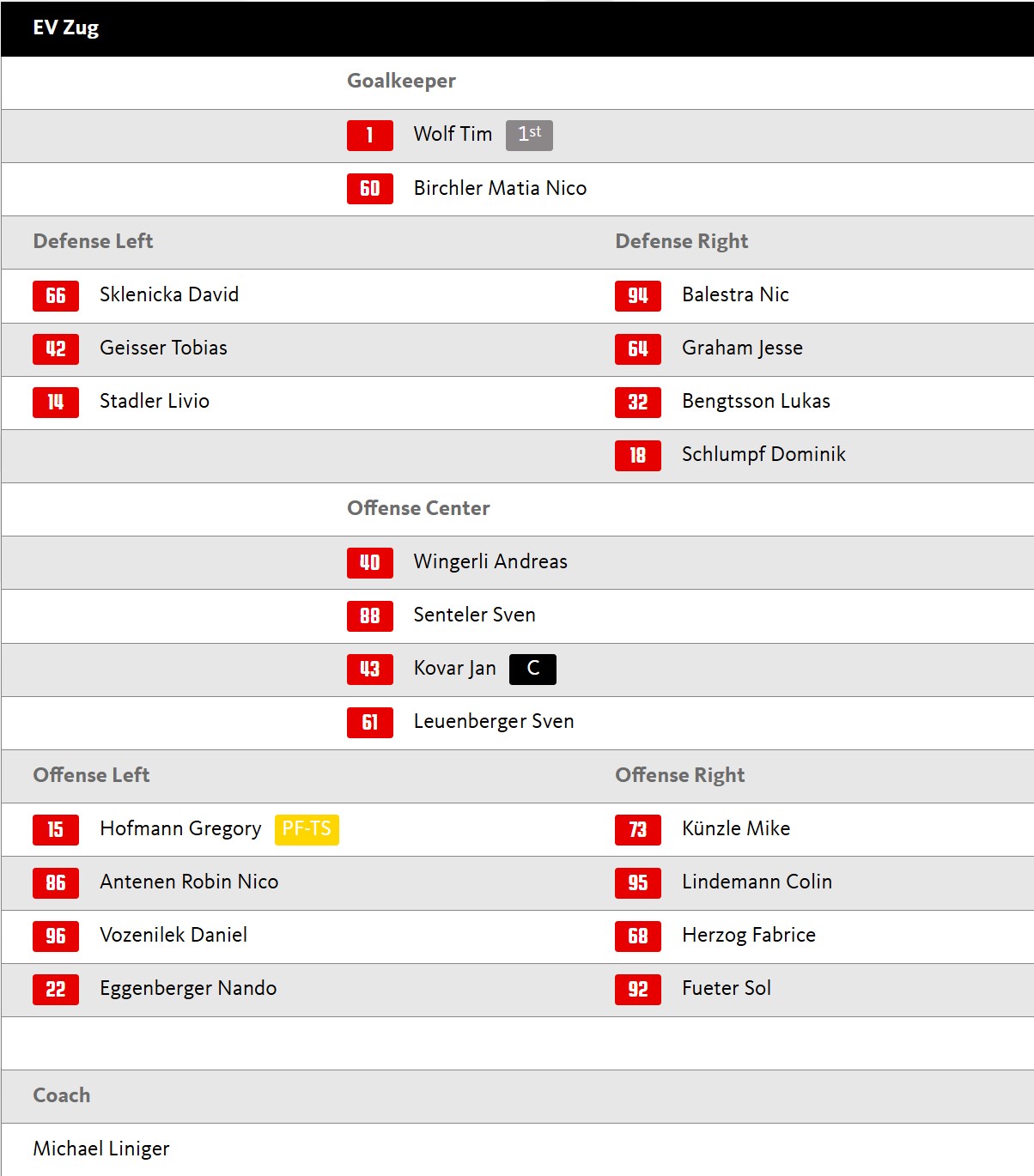 Beim EVZ steht heute Tim Wolf zwischen den Pfosten. Dominik Kubalik fehlt krankheitsbedingt.