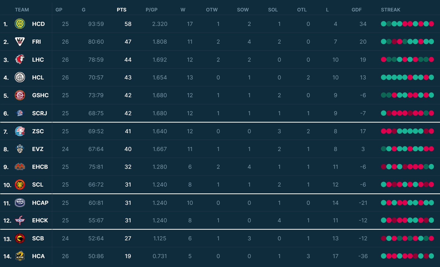 Der Lausanne Hockey Club geht nach 26 Meisterschaftsspielen mit 44 Punkten als Tabellendritter in die Partie. Der EV Zug hat zwei Partien weniger ausgetragen und bislang 40 Punkte gesammelt, was aktuell Rang 8 in der National League bedeutet. Mit einem Sieg könnten die Zuger den Rückstand auf Lausanne bis auf einen Punkt verkürzen und im engen Mittelfeld der Tabelle einen wichtigen Schritt nach vorne machen.