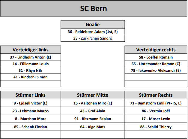 Entspannter ist die Personalsituation bei den Bielern, dort fehlt einzig Nicolas Müller verletzt. Im Vergleich zur Niederlage gegen Ambri Piotta gibt es überhaupt keine Änderung. Im Tor steht erneut Harri Säteri, der mit einer Fangquote von 90.26% deutlich unter seinem Wert vom letzten Jahr liegt, als er mit 92.47% noch zu den Ligabesten gehörte.