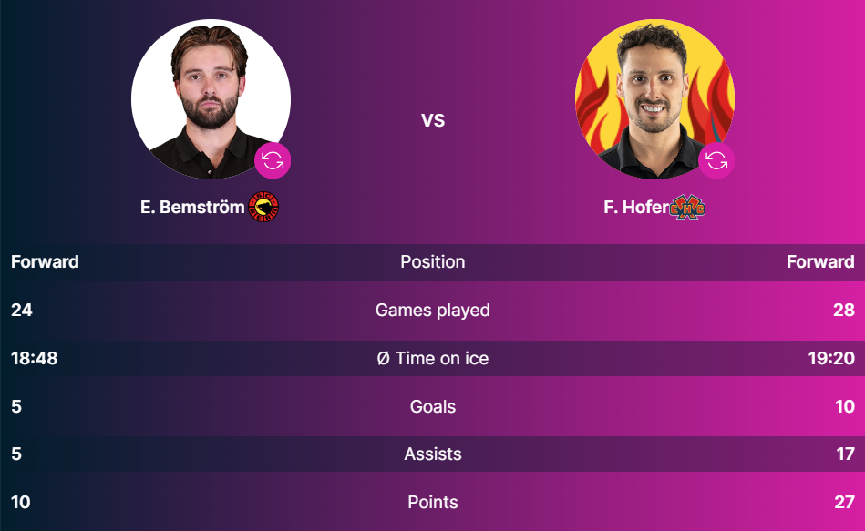 Beim SCB trägt wegen den vielen Abwesenden Emil Bemström das gelbe Trikot. Er hat in 24 Einsätzen bisher 10 Punkte gesammelt, verteilt auf 5 Tore und 5 Assists. Bei den Seeländern ist Fabio Hofer Topscorer. Er hat in 28 Einsätzen 27 Punkte verbucht, darunter 10 Tore und 17 Assists.
