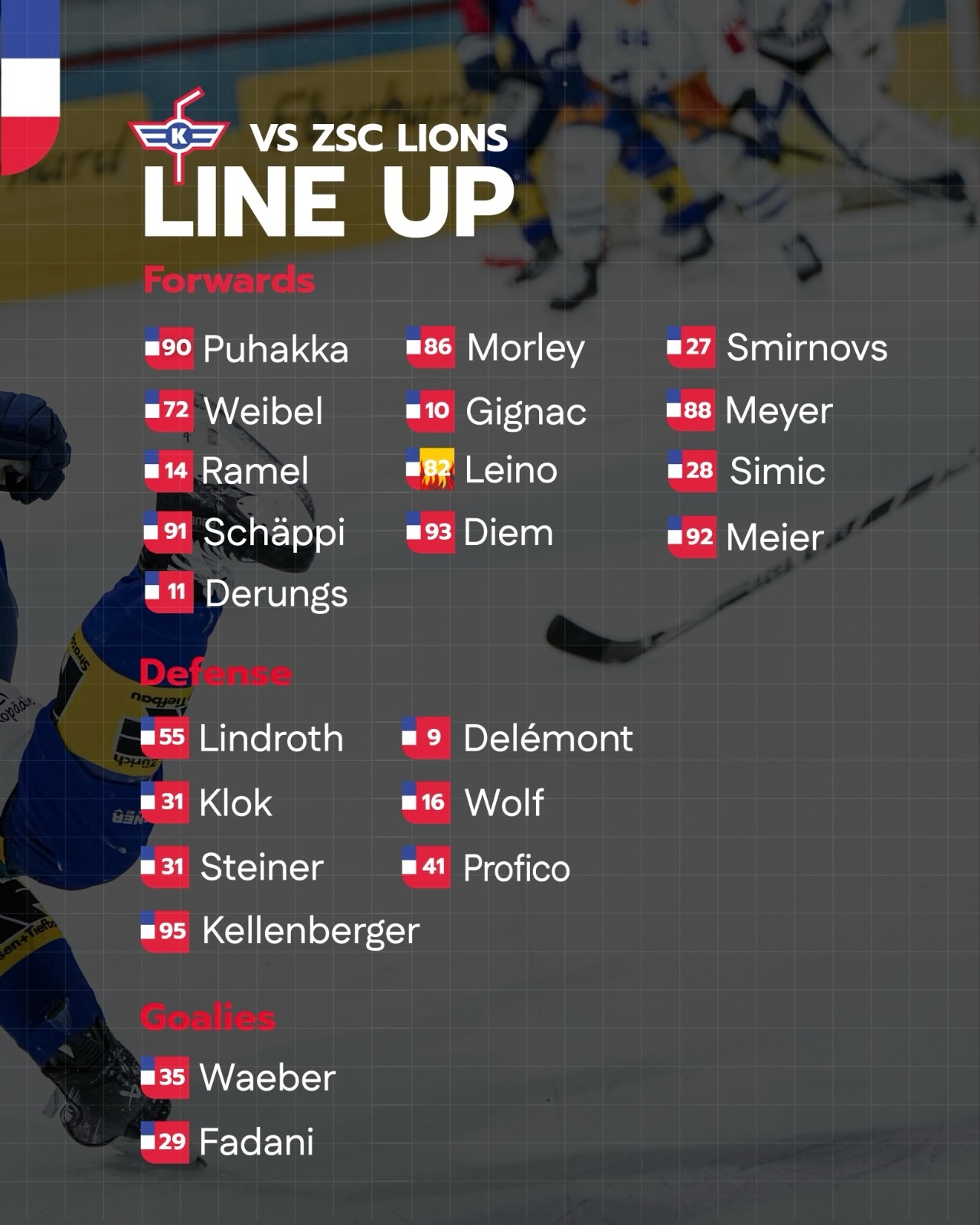 Im Vergleich zum letzten Spiel hütet heute Ludovic Waeber das Tor. Überzählig sind Dario Sidler und Harrison Luc Schreiber. Verletzt fehlen Simon Meier und Leandro Hausheer.