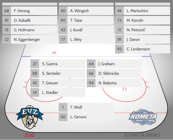 Herzlich Willkommen zum letzten Spieltag der Champions Hockey League Gruppenphase zwischen dem EV Zug und dem tschechischen Vertreter HC Kometa Brno. Ab 19:45 Uhr empfängt das Team um Michael Liniger in der heimischen OYM hall das Team aus Brünn. Im Vorfeld gibt es Wissenswertes zur anstehenden Partie und Informationen zu den Aufstellungen. Viel Spass!