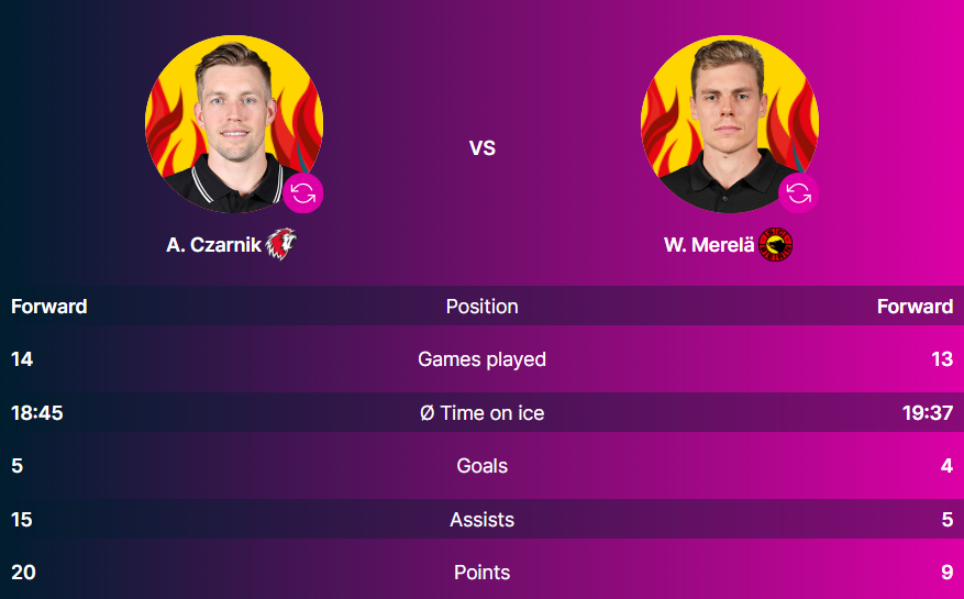 Bei den Gästen sorgt Austin Czarnik für mächtig Betrieb! Der ehemalige SCB-Spieler führt mit 20 Punkten nicht nur die teaminterne, sondern gleich auch die ligaweite Scorerliste an. Beim SC Bern ist Waltteri Merelä mit neun Punkten der beste Punktesammler.