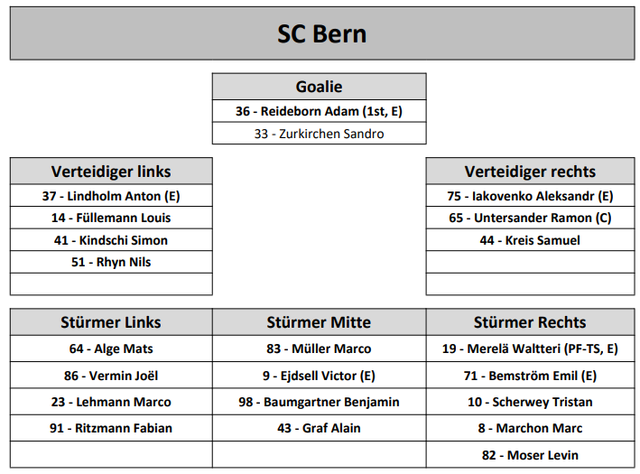 Beim SCB bleibt defensiv vieles beim Alten, doch die Rückkehr von Samuel Kreis bringt frischen Wind. Dank ihm rückt Joël Vermin wieder nach vorne in den Angriff, wo auch Marc Marchon nach überstandener Verletzung sein Comeback gibt. Fehlen werden hingegen Miro Aaltonen, der verletzt pausiert, sowie Thierry Schild, der seine erste von zwei Spielsperren absitzt – verhängt wegen einer physischen Tätlichkeit gegen Schiedsrichter Julien Stadelmann.