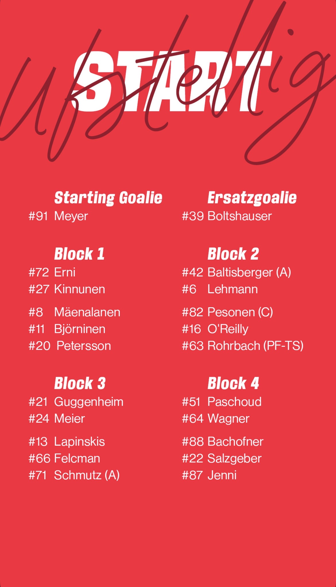 Bei den Tigers fehlen nach wie vor mehrere Spieler verletzt, so fehlen Joshua Fahrni, Tim Mathys, Dario Allenspach, Flavio Schmutz, Juuso Riikola und Patrick Petrini. Im Vergleich zum Spiel gestern ist Tim Mathys neu auf der Verletztenliste, dafür sind Saku Mäenalanen und Claude-Curdin Paschoud wieder mit dabei. Entsprechend wurden die Linien leicht angepasst. Im Tor steht heute Robin Meyer anstelle von Luca Boltshauser, der gestern Abend überzeugte. Meyer kommt in dieser Saison bislang auf eine Fangquote von 90,97%.