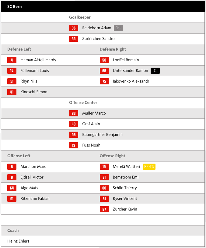 Insbesondere die erste Berner Sturmreihe mit Merelä, Marchon und Müller sorgt hier für ordentlich Furore. Merelä behauptet die Scheibe hinter dem Tor und arbeitet sich von dort vors Tor. Ciaccio kann die Situation entschärfen.