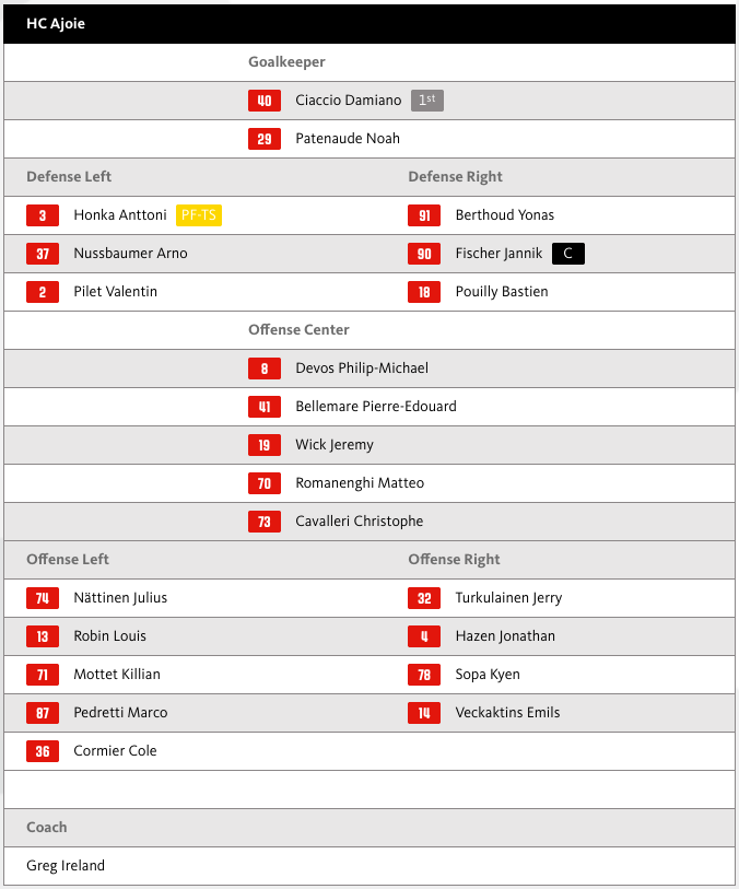 Gleich gehts los, auf dem Eis werden die Topscorer vorgestellt. Auf Seiten von Ajoie geht das schon mit einer gewissen Tragik einher: joie Topscorer Anttoni Honka trägt das Trikot, ohne in dieser Saison einen Treffer erzielt zu haben – das nach 19 Partien. Das gab es so in der National League noch nie.