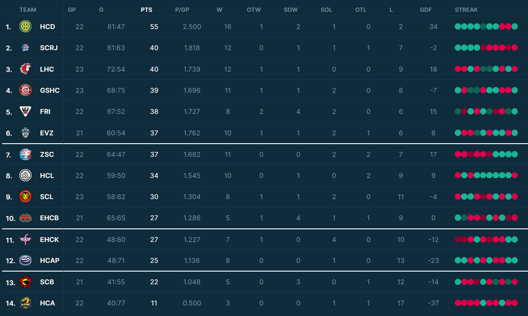 Die beiden Teams sind mit einem Sieg in die Länderspielpause gegangen – in der Tabelle sind sie allerdings weit auseinander. Zug ist nach 21 Spielen in der oberen Tabellenhälfte anzutreffen. Die gesammelten 37 Punkte reichen zurzeit für den sechsten Rang. Ambri hat eine Partie mehr absolviert, hat aber zwölf Punkte weniger auf dem Konto. Die Tessiner müssen sich mit dem zwölften Platz begnügen. Kommt Ambri heute näher oder orientiert sich der EVZ Richtung Top-3?
