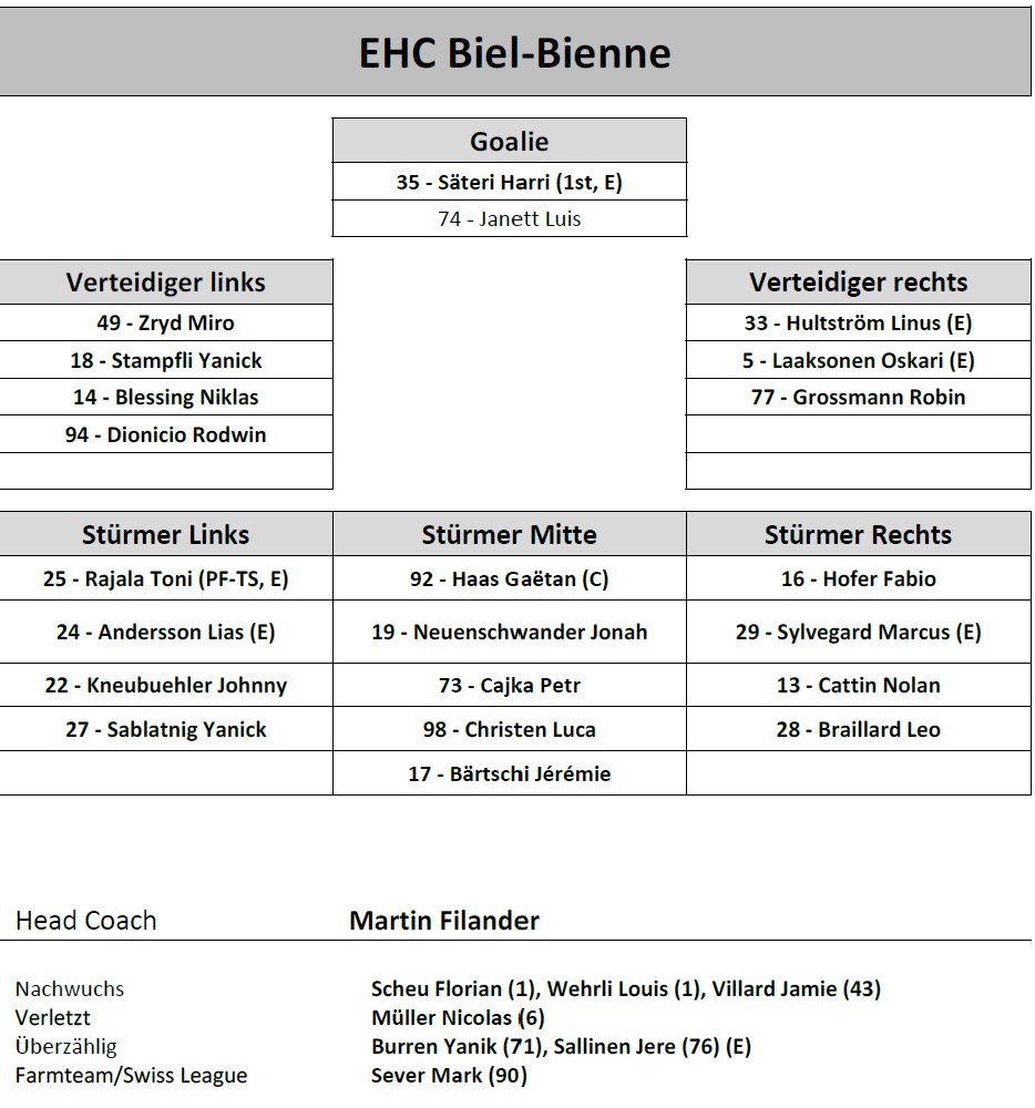 Linus Hultström ersetzt Yanik Burren in der Verteidigung und Leo Braillard übernimmt den Platz von Jere Sallinen.
