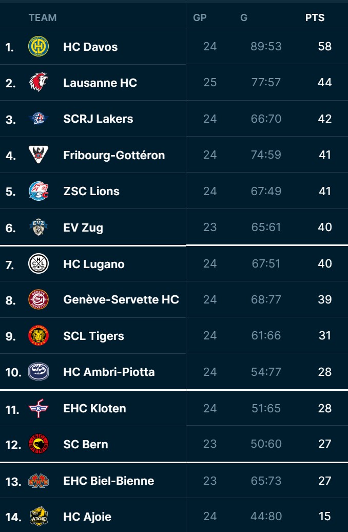 Am Freitag geht es für beide Teams weiter. Der HC Ajoie gastiert bei den ZSC Lions und der EHC Biel-Bienne empfängt die SCL Tigers zum Derby.