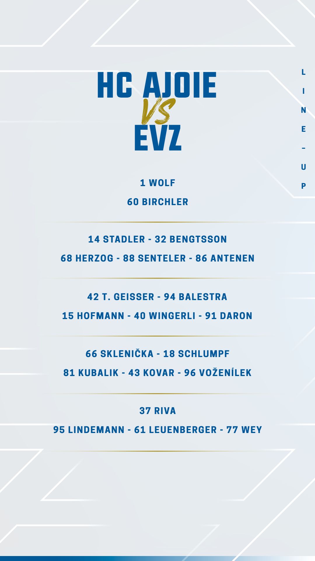 Wie gestern hütet auch Antoine Keller das Tor der Ajoulots. Ansonsten hat Greg Ireland deren vier Änderungen vorgenommen. Wick stürmt neu in der zweiten Linie. Nussbaumer, Veckaktins und Bellemare ersetzen die überzähligen Hazen und Pouilly sowie den verletzten Sopa. Auch Friman und Ciacco schauen von der Tribüne aus zu. Thiry, Schmutz, Patenaude, Garessus und Cavalleri stehen auf der Verletztenliste.
