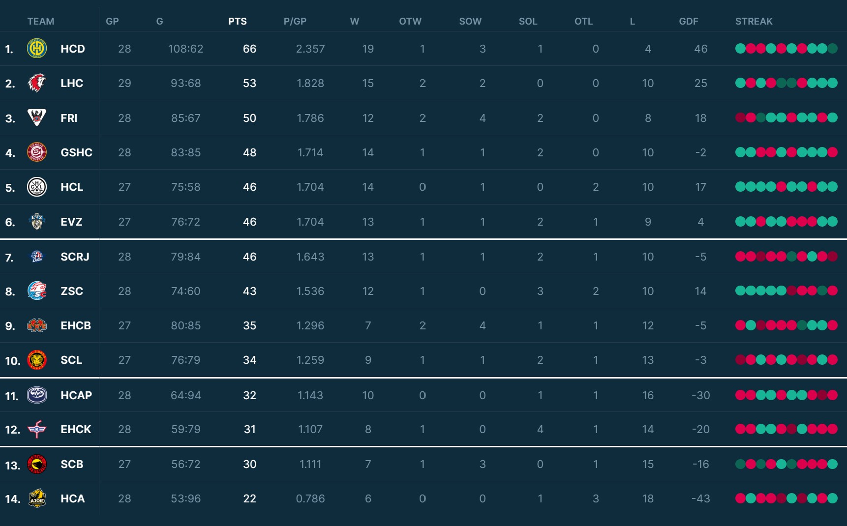 Die Leventiner belegen nach 28 Spielen mit 32 Punkten den elften Platz der National League. Der EHC Biel belegt mit 35 Punkten aus 27 Spielen den neunten Tabellenrang. Der Rückstand der Seeländer auf Platz acht beträgt bereits acht Punkte.