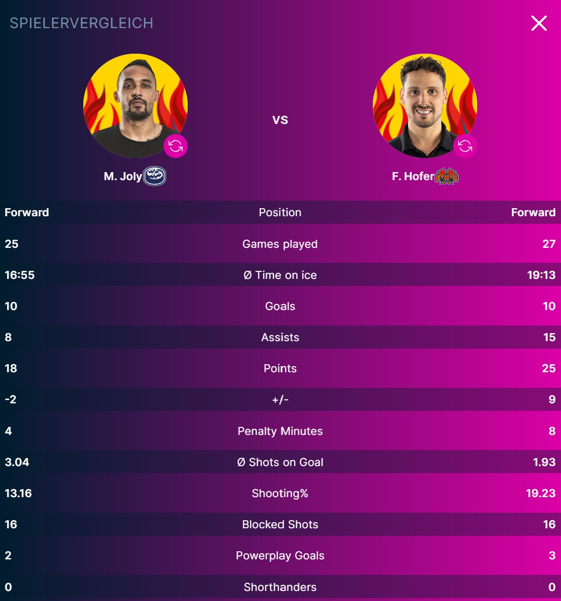 Beim HC Ambri-Piotta trägt Michael Joly den gelben Helm. Der Kanadier hat bisher zehn Tore erzielt und acht Assists geliefert. Beim EHC Biel-Bienne ist Fabio Hofer der beste Punktesammler. Der Österreicher hat zehn Tore und 15 Assists auf dem Konto.