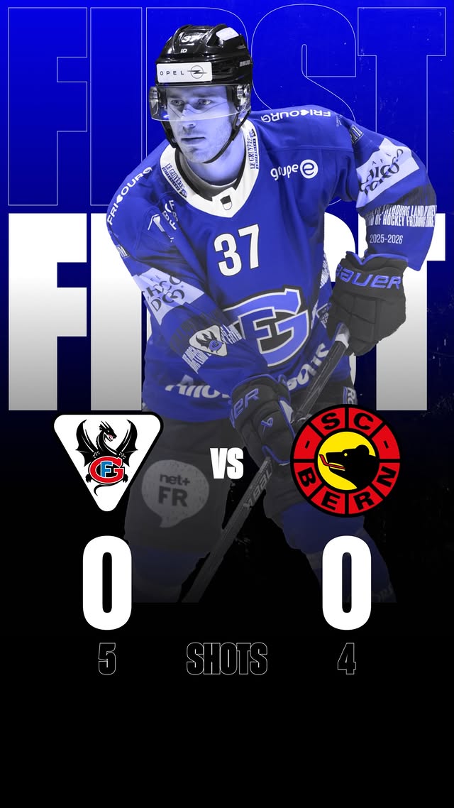 Es ist bislang ein taktisches Zähringer-Derby auf engem Raum. Bern startet wacher, presst hoch und zwingt Berra früh zu Paraden. Das dickste Ausrufezeichen der Gäste ist Bemströms Knaller an den Innenpfosten in Minute 6. Der Puck springt quer zurück ins Feld. Danach kippt die Kontrolle schrittweise zu Fribourg. Die Drachen schieben die Linien nach vorn, schnüren Bern phasenweise ein und kommen zu ihren besten Szenen. Beide Teams stehen defensiv sauber, kaum Unterbrüche, keine Strafen.
