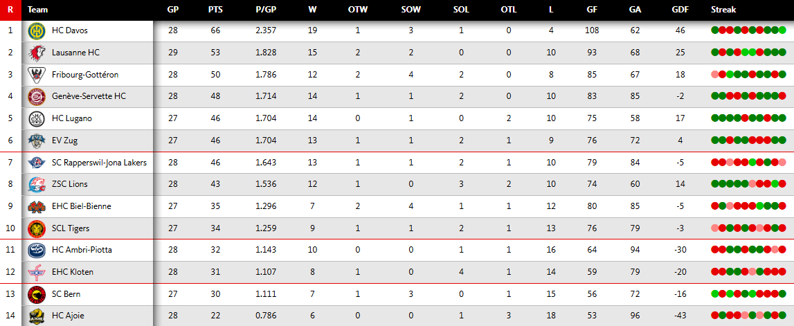 Aus Sicht der Tabelle könnten die heutigen Kontrahenten kaum weiter voneinander entfernt sein. Fribourg liegt mit 50 Punkten auf Platz drei und verfolgt Lausanne. Aus weiter Ferne mit 16 Punkten Abstand winkt Tabellenführer Davos. Die Mutzen aus Bern hingegen haben eine schwierige Saison und es mangelt an Durchschlagskraft. Mit 30 Punkten liegen sie auf Tabellenrang 13. Eine Siegesserie muss her, um aus dem Sumpf zu entkommen.