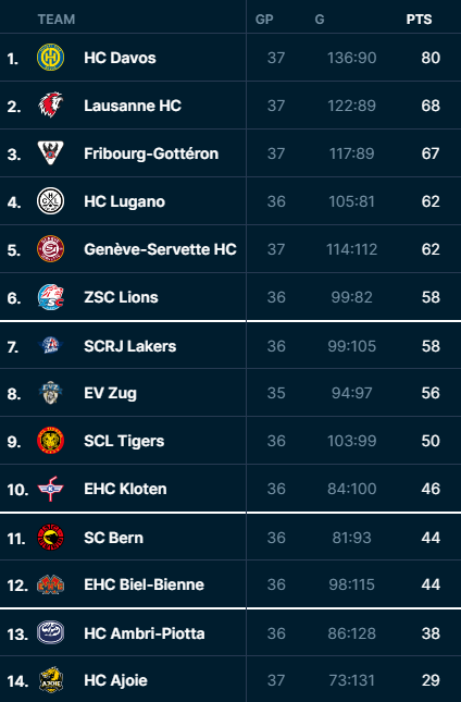 Im heutigen Duell empfangen die Freiburger Drachen die Tiger aus Langnau. Gottéron liegt mit 67 Punkten auf Tabellenrang 3 hinter Leader Davos und Lausanne. Der Abstand auf den Zweiten beträgt lediglich einen Punkt. Der Blick nach unten ist trügerisch. Lugano liegt fünf Zähler zurück, punktgleich mit Servette auf Rang 5.