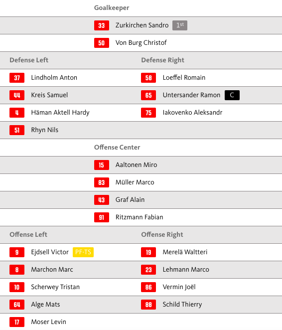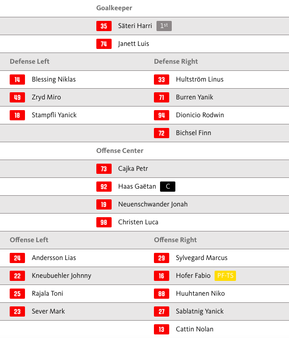 Aufstellung SC Bern