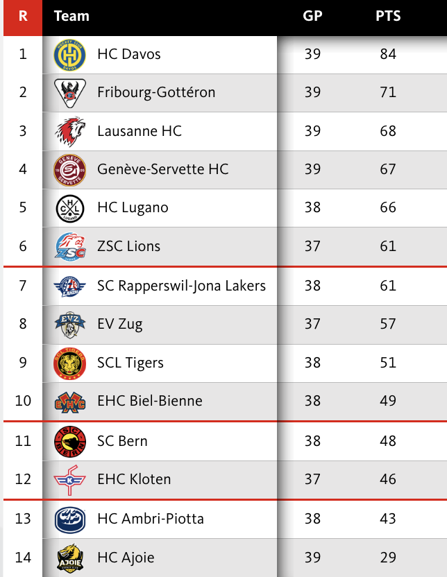 Ich heisse euch herzlich willkommen zu diesem Samstagabend in der National League! Im Rahmen der 39. Runde kommt es heute zum Derby zwischen dem EHC Biel und dem SC Bern. Um 19:45 Uhr wird der Puck in der Tissot Arena eingeworfen und hier bist du live dabei.