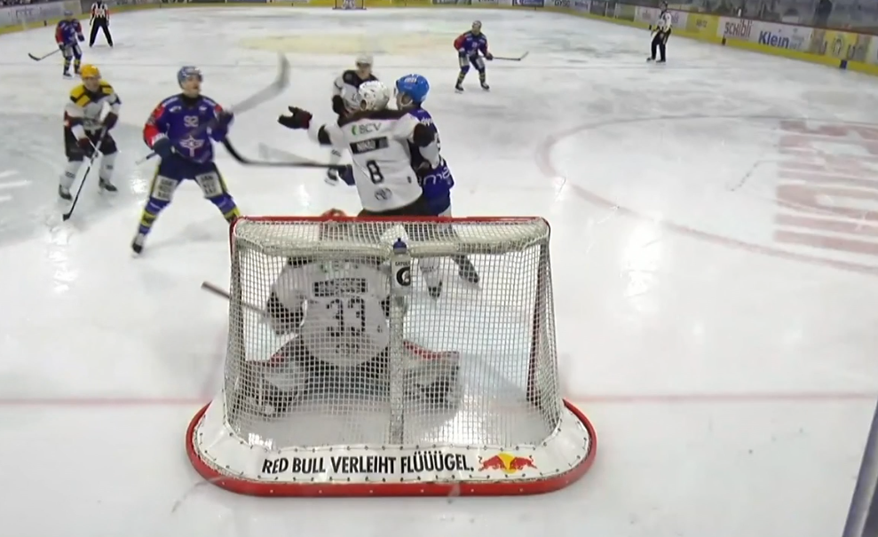 Morley kreist um den LHC-Kasten, Sansonnens ist aber hellwach und unterbindet ein wunderbares Zuspiel auf den Import der Hausherren. Dieser hätte nur noch einschieben müssen.