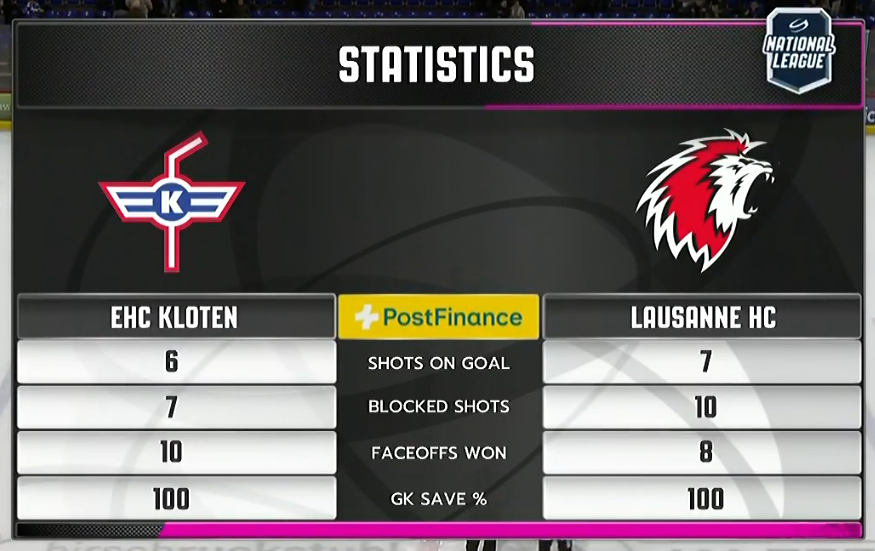 Ciaggiula kann die Scheibe wieder aus der eigenen Zone tragen. Gleichzeitig endet auch das zweite Powerplay der Hausherren ohne Torerfolg. Lausanne somit wieder in voller Stärke auf dem Eis.