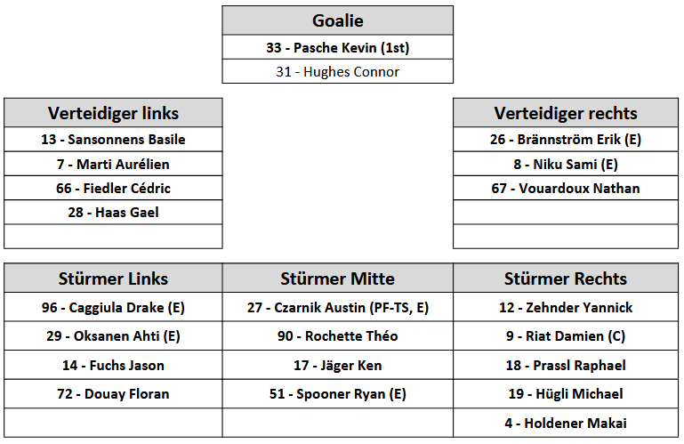 Aufstellung Lausanne HC