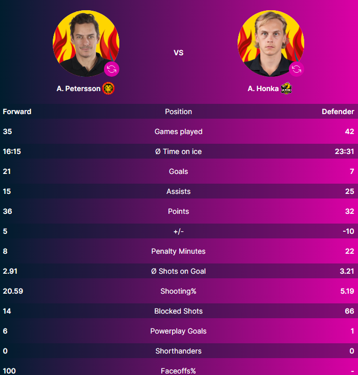 Auf Seiten des Heimteams trägt André Petersson den Flammenhelm. Der Schwede hat bisher mit 21 Toren und 15 Assists 36 Scorer gesammelt. Beim Gast aus Pruntrut hat Anttoni Honka mit 7 Toren und 25 Assists insgesamt 32 Scorerpunkte zu Buche stehen.