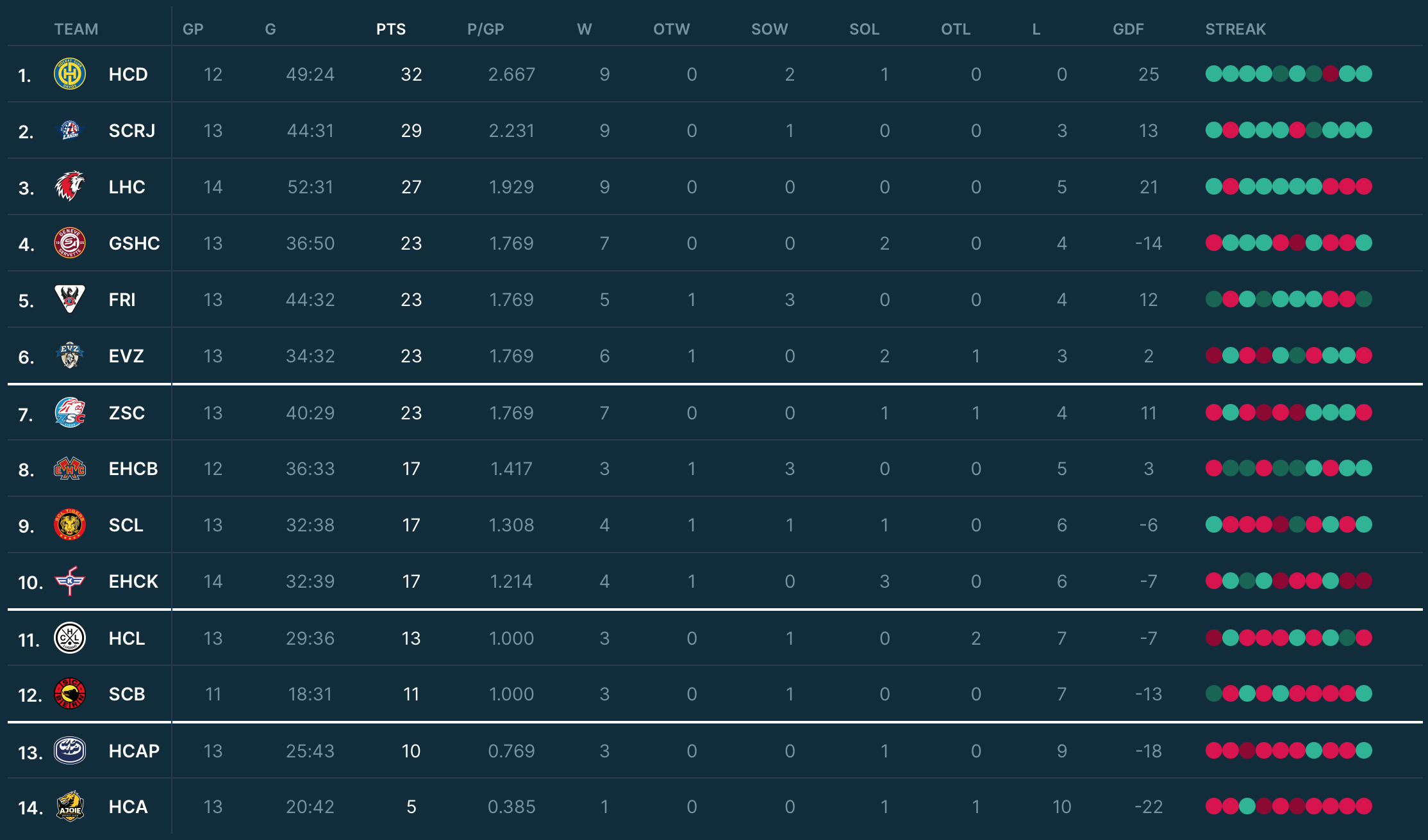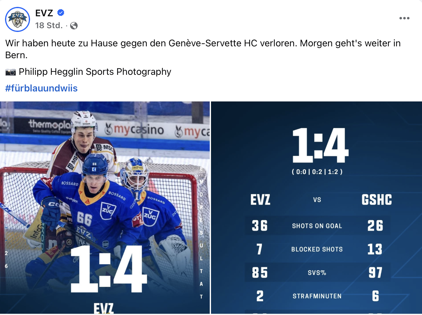 Aus dem EV Zug wird man aktuell nicht schlau. Nach zwei Erfolgen gegen den HC Lausanne und HC Ajoie verloren die Zuger gestern mit 1:4. Die Niederlage gegen Genf war die insgesamt fünfte aus acht Heimspielen. Auswärts läuft es ihnen besser. Ein Blick auf die Tabelle zeigt: Von den fünf Partien haben sie deren vier nach 60 Minuten gewonnen. Sie haben nur deren sechs Gegentore erhalten – der mit Abstand beste Wert vor dem zweitplatzierten Lakers (12). Können sie diese positive Auswärtsbilanz aufrechterhalten?