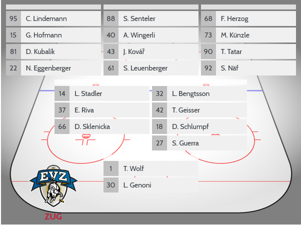 Im Line-Up von Michael Liniger gibt es zum gestrigen Sieg gegen Luuko Rauman eine Änderung. Daniel Vozenilek fehlt heute überzählig auf dem Spielberichtsbogen. Er wird heute durch Santiago Näf ersetzt. Im Tor gibt`s ebenfalls einen Wechsel, denn heute steht Tim Wolf anstelle von Leonardo Genoni zwischen den Pfosten.