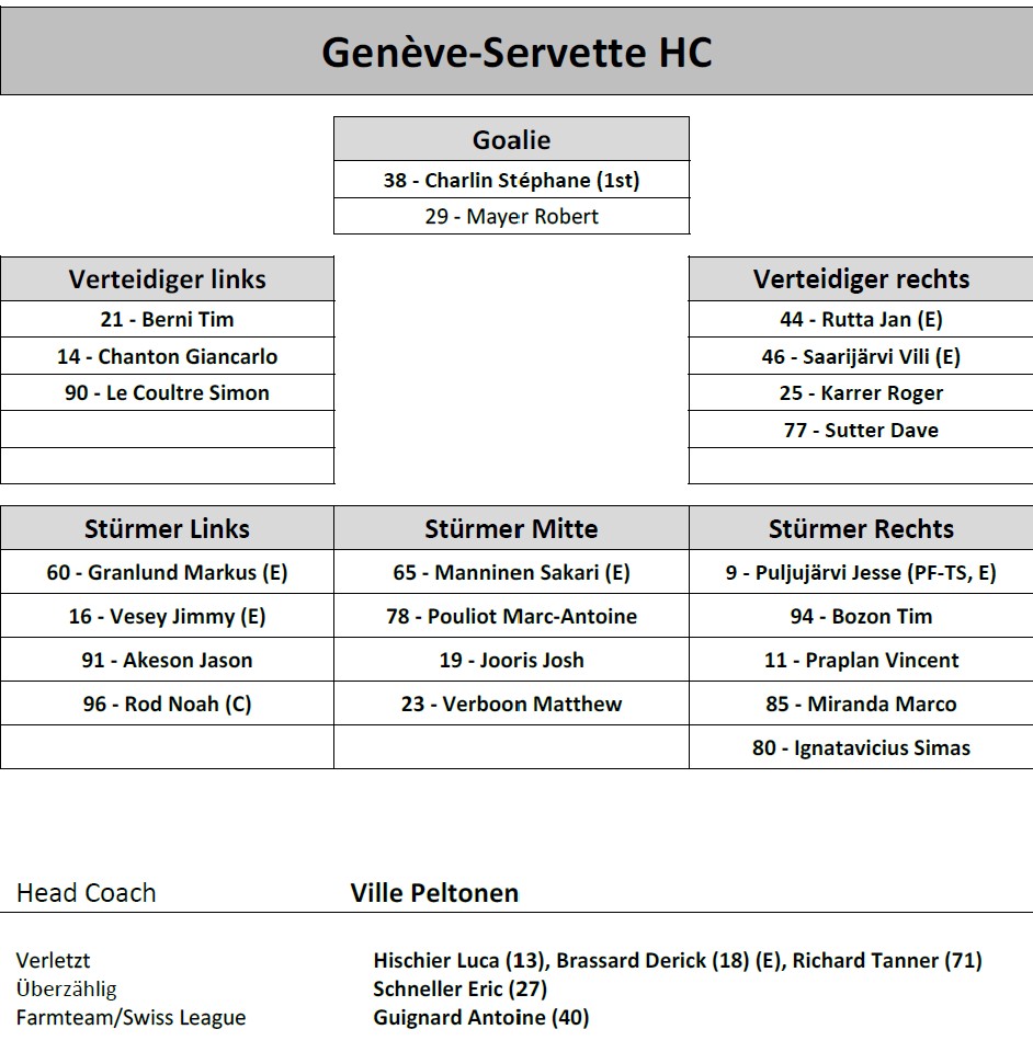 Aufstellung Genève-Servette HC
