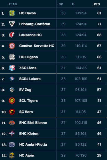 Im heutigen Kellerduell empfängt Schlusslicht Ajoie den EHC Biel-Bienne. Die Jurassier liegen mit 29 Punkten weit abgeschlagen hinter Ambri. Der Abstand auf den Vorletzten beträgt deutliche 12 Punkte. Jeder Sieg zählt für die Ajoulots, auch wenn es für das Team sehr wahrscheinlich auf die Relegation hinauslaufen wird.