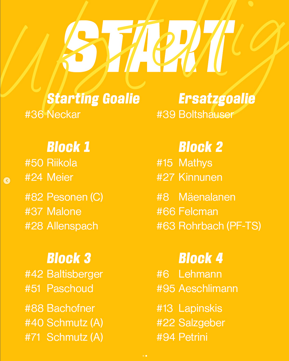 Headcoach Thierry Paterlini muss ebenfalls wenig Änderungen zum Sieg gegen Davos vornehmen. Dario Rohrbach kehrt heute anstelle von Joshua Farni ins Line-Up zurück und Bobin Meyer wird von Luca Boltshauser ersetzt. Eine Premiere gibt`s heute zwischen den Pfosten, denn der junge Franzose Martin Neckar feiert heute sein Debüt und startet zwischen den Pfosten.