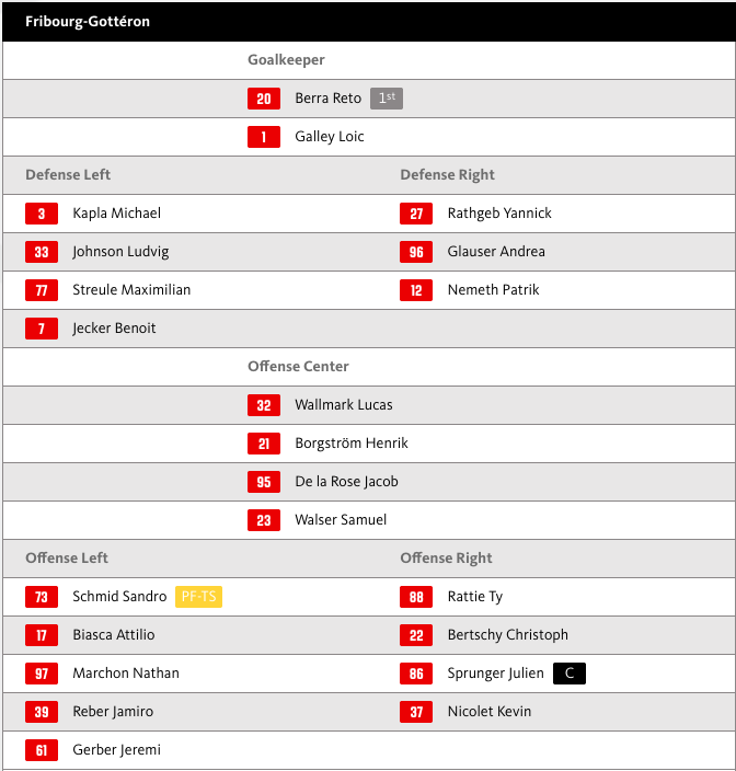 Aufstellung HC Fribourg-Gottéron