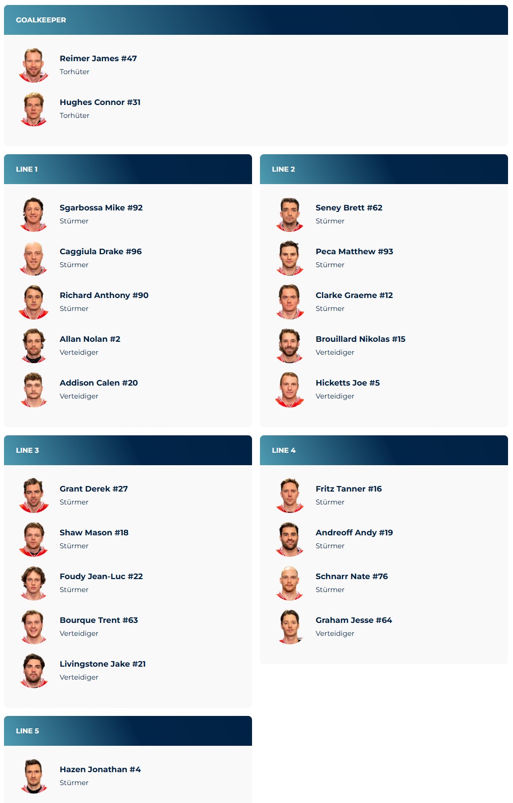 Die Aufstellung des Team Canada, gespickt mit vielen bekannten Namen aus der National League.