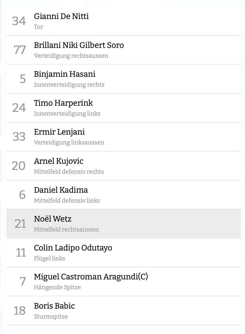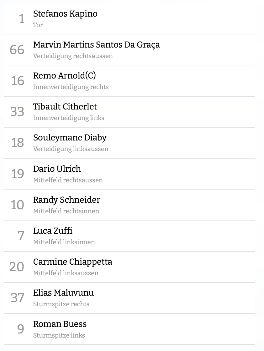 Hinziker und Dansoko kommen für die Torschützen Buess und Chiappetta.